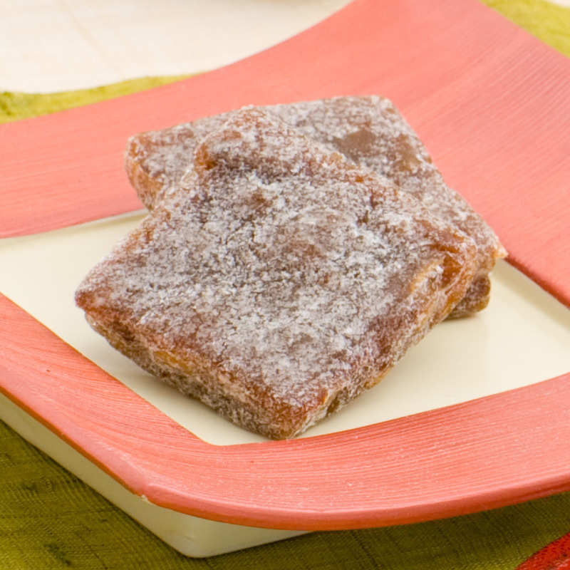 沖縄県産黒糖を使ったお餅生地に砂糖醤油で風味付けをした、甘さ控えめのくるみ餅。くるみがたっぷり入っていて、もっちり食感のお餅と、カリッと香ばしいくるみの食感は相性抜群です。